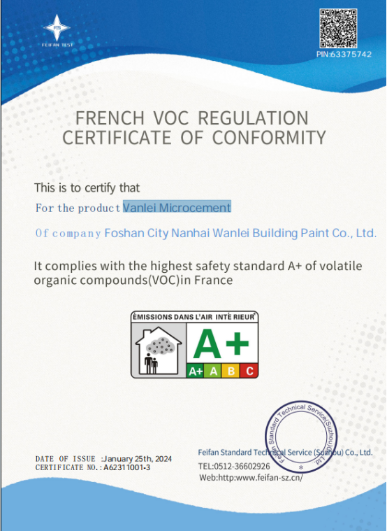 服务热度:0757-81760676 六、检测认证与质量保障体系6.1 权威检测机构清单· CTI华测检测:抗压强度9.8MPa,抗折强度8.6MPa 国家涂料质检中心:VOC 22g/L,符合GB 18582-2020 TÜV防滑认证:干态PTV 64,湿态PTV 48 法国A+认证:VOC排放等级A+